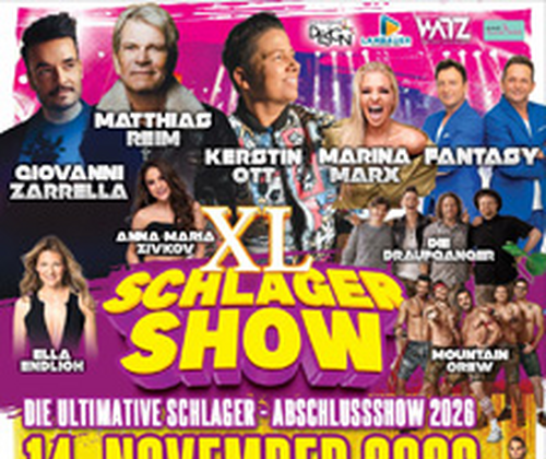 Am 14. November 2026 wird die Stadthalle Graz zum Mekka für alle Schlagerfans! Die XL Schlagershow 2026 bringt die größten Stars des deutschen Schlagers auf eine Bühne und verspricht ein unvergessliches Live-Erlebnis voller Emotionen, Energie und bester Unterhaltung - moderiert von dem beliebten Entertainer Daniel Düsenflitz.