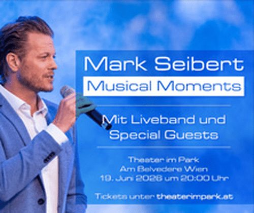 Nach ausverkauften Konzerten in den vergangenen Jahren wird Musicalstar Mark Seibert - bekannt aus Stücken wie Elisabeth, Tanz der Vampire, Mozart und Rebecca - auch in 2026 wie gewohnt einen Soloabend mit seiner Band geben. Mit im Gepäck wieder einige der grössten Musicalhits, die man von ihm kennt sowie einige neue Nummern und namenhafte Special Guests der Wiener Musicalszene.