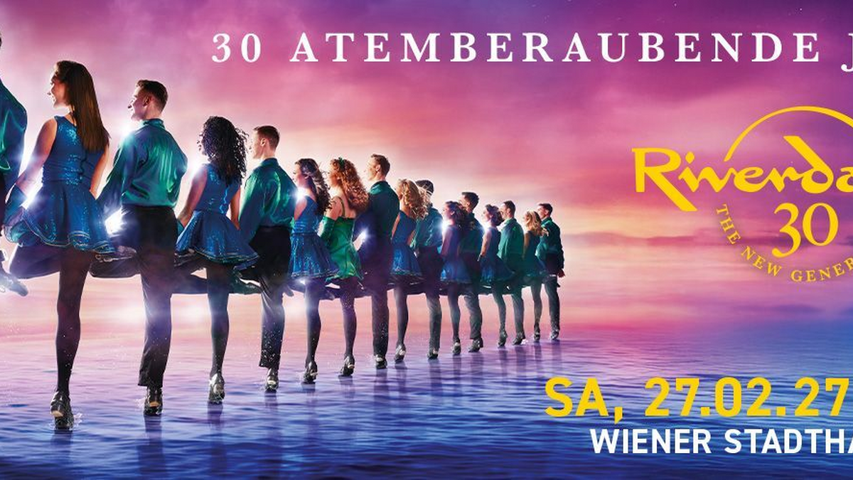 Ein weltweites Phänomen, 30 atemberaubende Jahre, 30 Shows 2027 hierzulande, in Österreich und in der Schweiz: Riverdance! Im Frühjahr 2027 ist die spektakuläre irische Tanzshow auf ihrer internationalen Jubiläumstour auch in Berlin, Hamburg, München, Köln sowie in 26 weiteren Städten live zu erleben! Der Tournee-Titel „Riverdance 30 – The New Generation“ verweist auf die Generation der Tänzerinnen und Tänzer der Jubiläumsproduktion, die nach 1995 geboren wurde und mit Riverdance aufgewachsen ist. Diese neue Generation talentierter, leidenschaftlicher junger Darstellerinnen und Dartseller trägt die Magie der Originalshow, die das Publikum weltweit seit Jahrzehnten begeistert, 2027 mit neuen Choreografien und Kostümen sowie exzellenter Performance in die Zukunft.