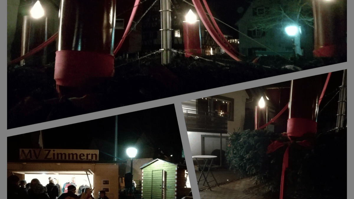 Jedes Jahr am letzten Samstag vor Weihnachten findet in Bisingen-Zimmern die Dorfweihnacht der Zimmerner Vereine statt. Sowohl für das leibliche Wohl als auch für die musikalische Unterhaltung ist mit den Zimmernern Vereinen gesorgt. Die Bevölkerung ist herzlich eingeladen, bei Schupfnudeln, Rote Wurst und Glühwein an den Feuerschalen einen schönen Abend zu verbringen. Um 18 Uhr wird der Nikolaus vorbeikommen. Schirmherr der Veranstaltung ist Ortsvorsteher Andreas Fecker.