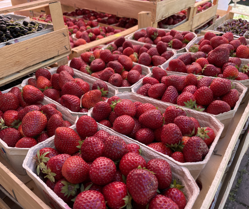 Wochenmarkt auf dem Marktplatz vor dem Rathaus