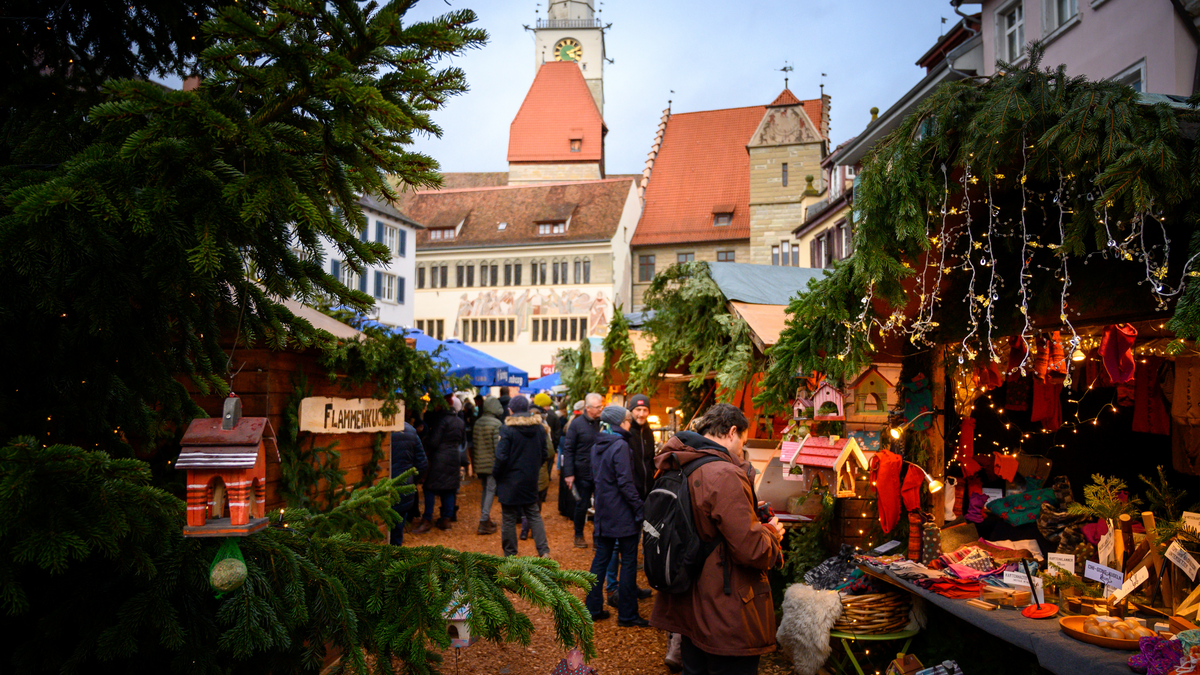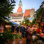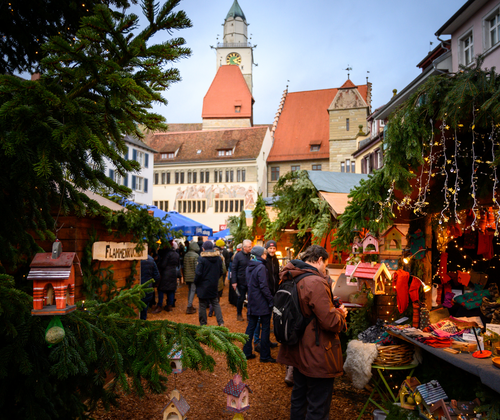 Stimmungsvoller Weihnachtsmarkt auf der Überlinger Hofstatt. Beim Überlinger Weihnachtsmarkt auf der Hofstatt herrscht eine ganz beschauliche vorweihnachtliche Stimmung. Kunsthandwerker und Händler aus der Bodenseeregion breiten täglich von 11:00 bis 20:00 Uhr in weihnachtlich geschmückten Hütten ihre liebevoll gestalteten Waren und Leckereien aus. Düfte von Glühwein und Punsch, Zimt, Mandeln und frischem Tannengrün liegen in der Luft. Ein kleines, feines Rahmenprogramm für Jung und Alt rundet den Weihnachtsmarktbesuch ab. Auch das Weihnachtspostamt ist auf dem Weihnachtsmarkt zu finden. In den umliegenden Gassen und Straßen findet sich eine Vielzahl individueller, meist inhabergeführter Läden, die zum Stöbern und Bummeln einladen. Ein Besuch der vorweihnachtlichen Altstadt mit ihrem Weihnachtsmarkt lässt sich bestens mit einer Wohlfühlauszeit in der Bodensee-Therme Überlingen verbinden. Weitere Informationen zur Vorweihnachtszeit in Überlingen.