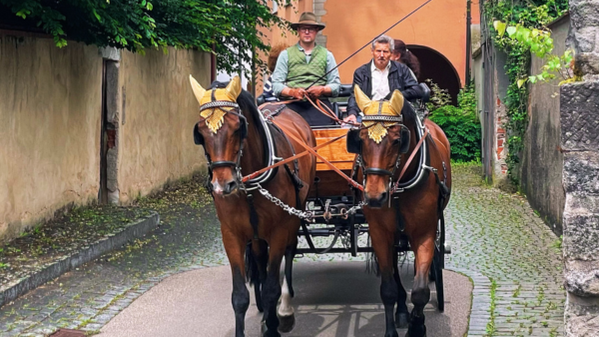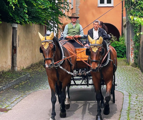 Eine Kutschfahrt der besonderen Art lädt nach Ellwangen ein. Eine Kutschfahrt der besonderen Art lädt nach Ellwangen ein. Begeben Sie sich auf eine kurzweilige Rundfahrt durch die historische Altstadt von Ellwangen, vorbei an den wichtigsten Sehenswürdigkeiten der Innenstadt. Die Droschkenlinie dreht ihre Runden durch die Innenstadt und der Zustieg an der Haltestelle ist in regelmäßigen Abständen möglich. Der Preis pro Person und Fahrt beträgt 2,00 €. Tickets erhalten Sie direkt beim Kutscher. Abfahrt: Haltestelle der Droschkenlinie vor der Tourist-Information am Fuchseck.  Veranstalter: Ellwanger Kutscher und Tourismusverein Ellwangen e. V.. Bitte beachten Sie, dass bei schlechter Witterung sowie zu heißem Wetter keine Droschkenlinie fährt. Wir bitten um Ihr Verständnis. Die Droschkenlinie Ellwangen ist eine Initiative von ProEllwangen. 2025 mit freundlicher Unterstützung von: Baugenossenschaft Ellwangen eGRotochsen-BrauereiStadt EllwangenTourismusverein Ellwangen e.V.
