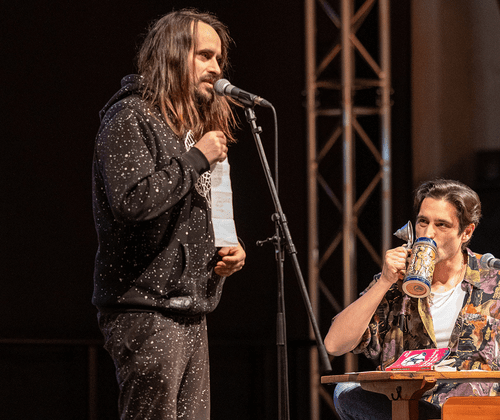 Nektarios Vlachopoulos liest bei jeder Ausgabe mit einem Gast um die Wette. Und zwar die Texte, die ihr mitbringt! Nach Publikumsabstimmung wird entschieden, was besser war: der Text oder der Vortrag. Als Gewinn winkt ein Bier! Was kann da schon schiefgehen? Nektarios Vlachopoulos hat zwei Leidenschaften und bei Lesen für Bier darf er sie beide ausleben! Er liest bei jeder Ausgabe mit einem Stargast um die Wette. Und zwar die Texte, die ihr mitbringt! Ob Schiller, koreanische Staubsaugeranleitung oder das eigene Tagebuch: Wir akzeptieren jede Challenge. Das Publikum entscheidet nach jeder Runde, was besser war: der Text oder der Vortrag. Gewinnt der Text, bekommt die Person, die ihn mitgebracht hat ein Bier (gern auch alkoholfrei). Gewinnt der Vortrag, trinkt die Person auf der Bühne. Was könnte da schon schief gehen? Tino Bomelino sorgt als Ein-Personen-Showband für die passende Stimmung.