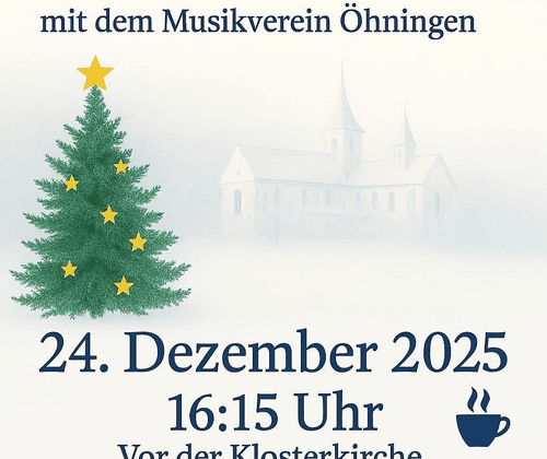 Der MV Öhningen unterhält sie ab 16:00 Uhr mit Weihnachtsliedern unterm Christbaum auf dem Kirchplatz Glühwein und Punsch auf Spendenbasis. Bitte eigenen Becher mitbringen.