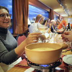 Rundfahrt inklusive Fondue. Zur Vorauswahl für mindestens 2 Personen: **Fondue Chinoise** Fondue mit Brühe und Fleisch sowie gemischter Salat und Beilagen **Käsefondue** Verschiedene Verfeinerungen zur Auswahl und gemischter Salat Anmeldung erforderlich