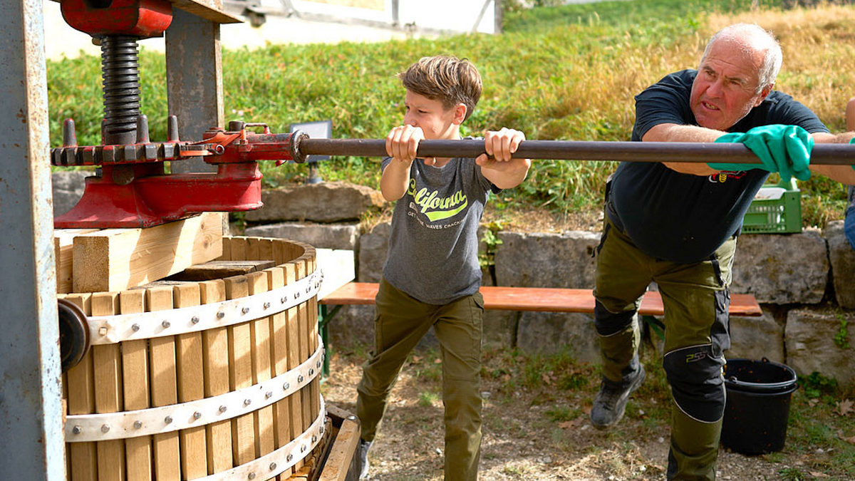 ### **Aktionstag rund um das Kulturgut Streuobst** Die traditionelle Veranstaltung bietet viele Mitmachaktionen – ob Apfelsaftherstellung, Apfelmuskochen oder Dörren, hier kann die ganze Familie aktiv werden! ### Ein Spaß für die ganze Familie! Das traditionelle »Moschtfescht« lockt bereits seit 1996 jährlich zahlreiche Besucherinnen und Besucher ins Freilichtmuseum. Das Freilichtmuseum Beuren liegt inmitten von Streuobstwiesen. An zahlreichen Stationen steht die Obstverarbeitung im Mittelpunkt. Stellen Sie mit Obstmühle und Obstpresse Saft her, kochen Sie am holzbefeuerten Herd Apfelmus und bereiten Sie an der Obstdarre im Back- und Waschhaus aus Sielmingen leckeres und gesundes Naschwerk zu. Auch beim Apfelschälwettbewerb des Schwäbischen Streuobstparadieses ist Ihr Einsatz gefragt! Apfelsaft, Gelee und Obst aus dem Museumsdorf sowie Tipps rund um die Pflege der Streuobstwiesen und Obstbäume können Sie mit nach Hause nehmen. Eine besondere Attraktion bildet die Sortenausstellung mit zahlreichen regionalen Apfel- und Birnensorten im Schafstall aus Schlaitdorf. ### Kooperationen Das »Moschtfescht« findet in Zusammenarbeit mit dem Schwäbisches Streuobstparadies (www.streuobstparadies), den Kreisverbänden der Obst- und Gartenbauvereinen Esslingen (www.kov-esslingen.de) und Nürtingen (www.kov-nuertingen.de) sowie der Obst- und Gartenbauberatung des Landkreises Esslingen statt.