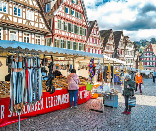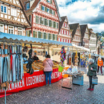 Buntes Markttreiben in der Calwer Innenstadt: Die vielen Händler bieten in den Bereichen Lederstraße, Salzgasse und Marktplatz ihr reichhaltiges Sortiment an. Der Markt beginnt um 8 Uhr und endet um 17 Uhr. Von Lederwaren und Textilien über Accessoires und Kunsthandwerk bis hin zu Haushaltswaren und Handyzubehör wird Allerlei angeboten. Auch ein Messer- und Scherenschleifer und mehrere Gastronomiestände sind dabei. Bitte beachten Sie, dass während des Krämermarktes die Durchfahrt im Marktbereich gesperrt ist und ein Park- und Halteverbot besteht. Parkplätze finden Sie in den Parkhäusern ZOB, Calwer Markt, Haggasse und Kaufland.