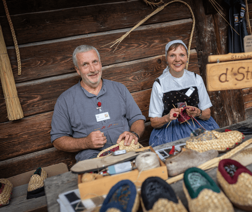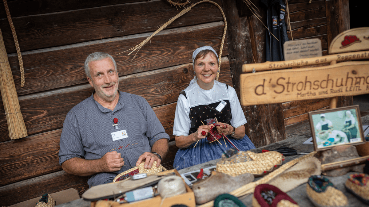 Handwerksvorführung: Strohschuhmacher Handwerksvorführung: Strohschuhmacher Die Strohschuhmacher Martha und Rudi Leitl erklären und zeigen den Besuchern ihr traditionelles Handwerk.