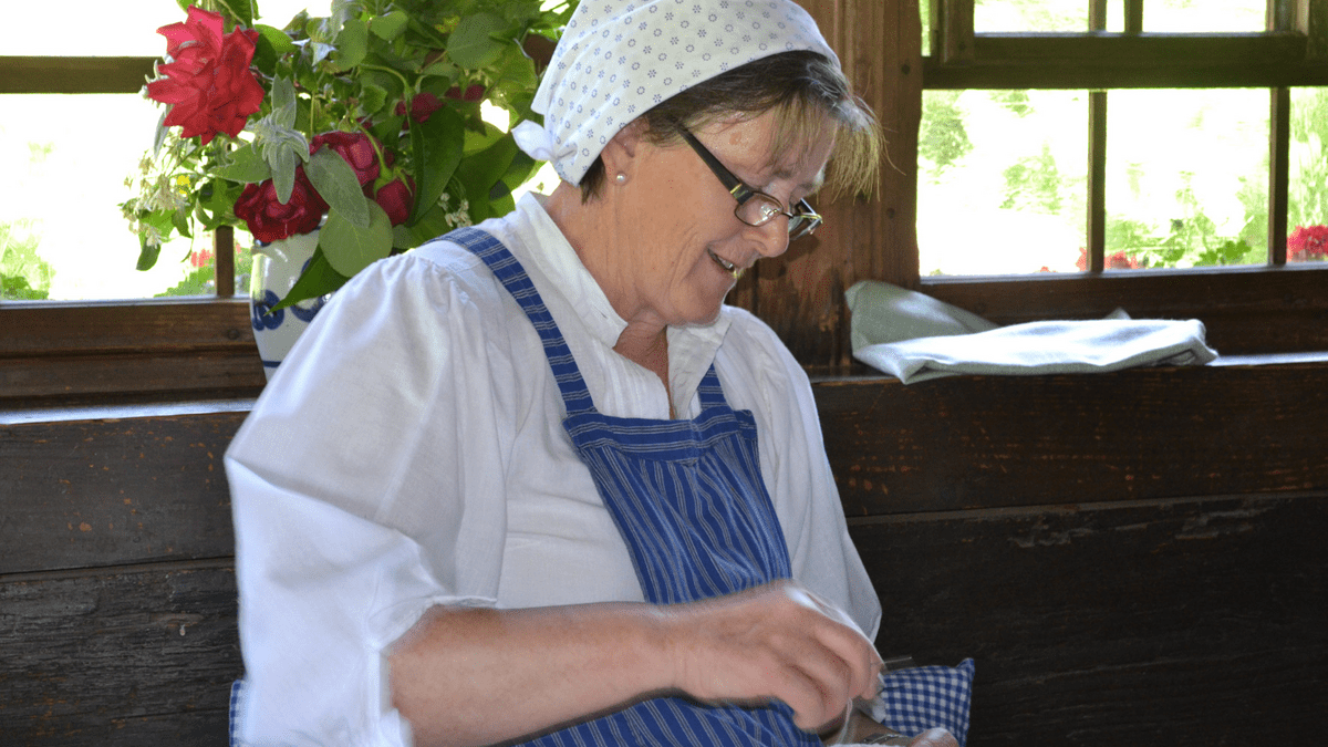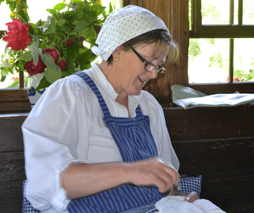 Handwerksvorführung: Sticken  Handwerksvorführung: Sticken Die Stickerin Marianne Heil zeigt das Besticken von Stoff.