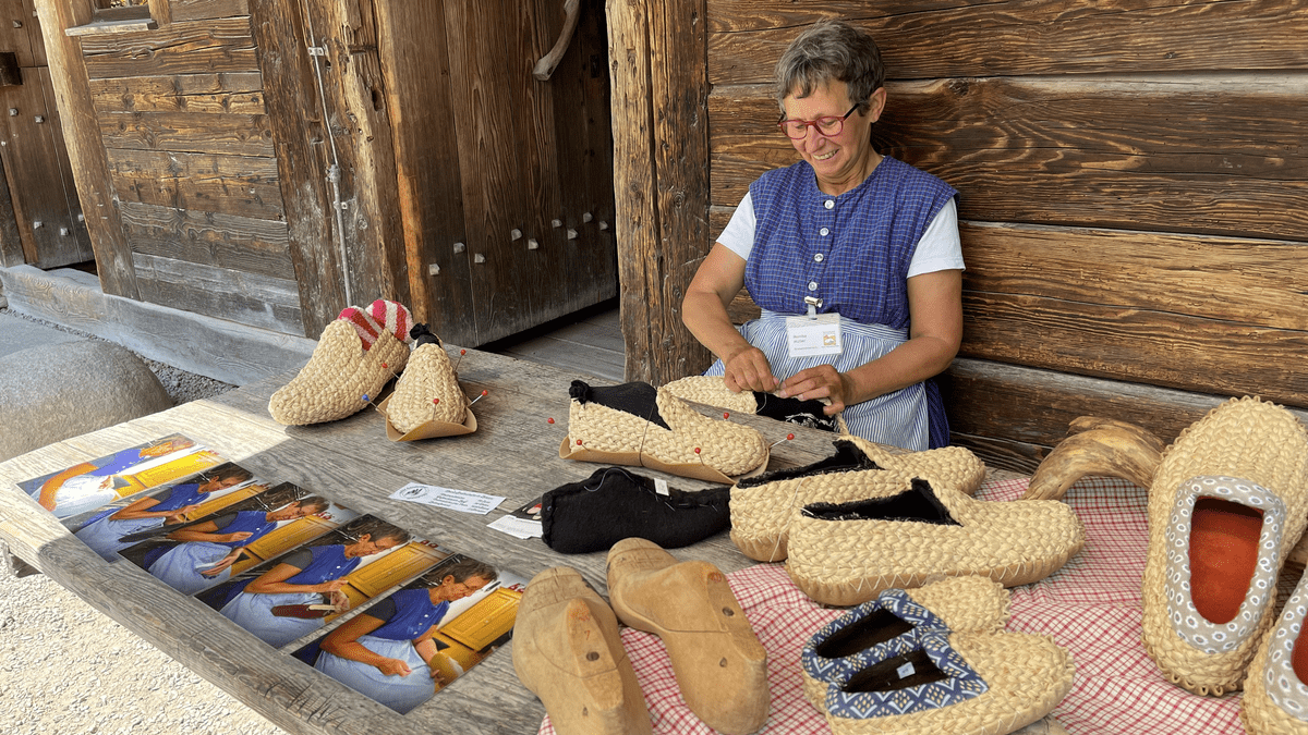 Handwerksvorführung: Strohschuhmacherin Handwerksvorführung: Strohschuhmacherin Die Strohschuhmacherin Monika Müller zeigt Ihnen gerne ihr Handwerk.