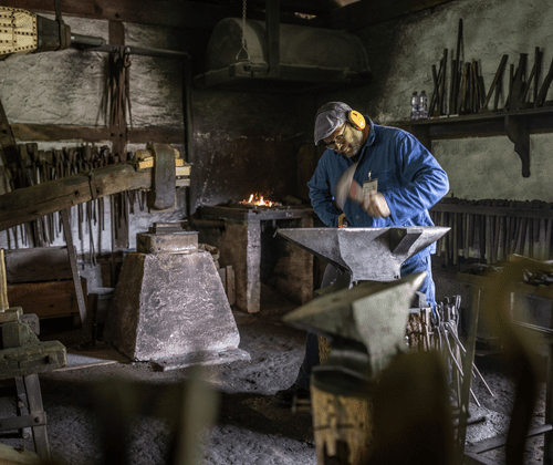 Handwerksvorführung: Schmied Handwerksvorführung: Schmied Der Schmied Marten Bay zeigt das Schmieden in der Hammerschmiede.