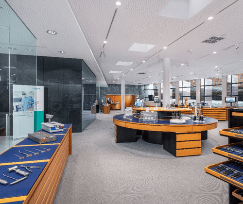 Chirurgische Leisenschaft entdecken im Aesculap Informations- und Beratungszentrum Erleben Sie bei einem Rundgang im Informations- und Beratungszentrum die faszinierende Produktwelt von B. Brauns Chirurgie-Sparte Aesculap. Von chirurgischen Instrumenten und Hüft- sowie Knieprothesen bis hin zu innovativen digitalen Visualisierungssystemen – tauchen Sie im Showroom in die Welt der Chirurgie ein! B. Braun ist ein führendes Unternehmen der Medizintechnologie. Mit 64.000 Mitarbeiter innen ist das Familienunternehmen ein verlässlicher Partner, der intelligente Lösungen entwickelt und wegweisende Standards setzt, um den Fortschritt im Gesundheitswesen zu beschleunigen. Aesculap bietet Lösungen für chirurgische und interventionelle Kernprozesse.