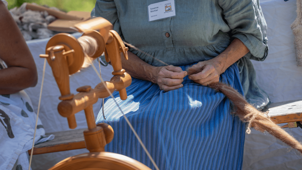 Handwerksvorführung: Spinnen  Die Spinnerin Susanne Büchler erklärt und zeigt den Besuchern ihr Handwerk.