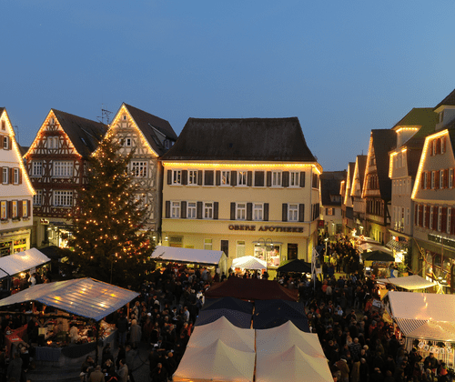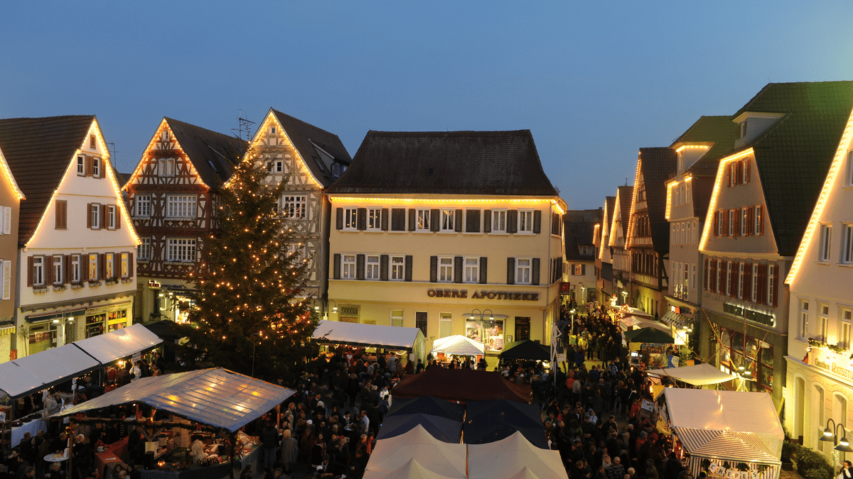 Weihnachtsmarkt in Vaihingen an der Enz Vaihinger Vereine, Gruppen und Schulklassen laden dazu ein, den Advent auf dem Marktplatz zu schmecken, zu riechen und zu erleben. Handgemachte Geschenkideen und liebevoll gestalteter Weihnachtsschmuck, dazu allerhand Köstlichkeiten, umrahmt von weihnachtlichem Musikprogramm. Genießen Sie Ihren Weihnachtsbummel vor der zauberhaften Fachwerkkulisse der Vaihinger Innenstadt!