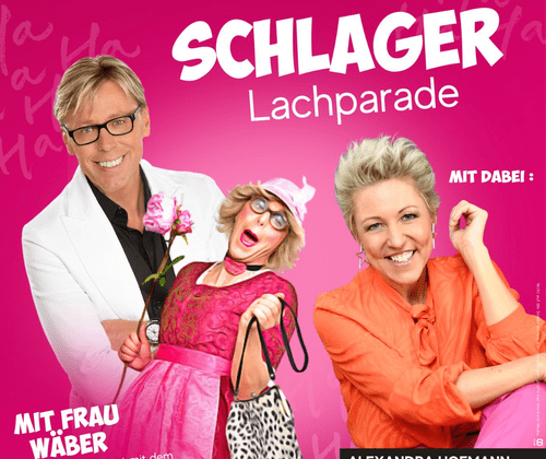 Die SchlagerLachparade mit Alexandra Hofmann, Hansy Vogt und Frau Wäber. Am Fr., 27.07.2026 um 20.00 Uhr (Einlass ab 19.00 Uhr) Dich erwartet ein Abend voller Schlager, Spaß und guter Laune! Erlebe einen unvergesslichen Abend, der Unterhaltung, Humor und eine große Portion Schlager für dich bereithält. Sichere dir jetzt Tickets und sei dabei, wenn der Saal vor Schlager und guter Laune bebt.