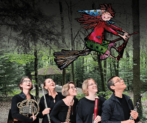 "Die kleine Hexe " - ein musikalisches Abenteuer mit dem Vahinger Bläserqunitett und Silke Karl (Schauspiel) - Kinderkonzert on tour für Kinder ab 5 Jahren. Am Mi., 15.04.2026 um 14.30 Uhr (Einlass ab 14.00Uhr) Die kleine Hexe wünscht sich zur Walpurgisnacht, mit den großen Hexen auf dem Blocksberg zu tanzen - und das als jüngste Hexe von allen. Die Musikerinnen und Musiker des Vahinger Bläserquintetts entführen die Kinder gemeinsam mit der freien Schauspielerin Silke Karl in eine Welt voll mit Qundern und Geheimnissen. Begleitet durch die Musik von Francesco Marino geht die kleine Hexe gemeinsam mit ihrem klugen Raben Abraxas auf eine Abenteuerreise zur Walpurgisnacht. Els Jordaens, Querflöte Katja Prischmann-Zima, Oboe Ute Münch, Klarinette Heidi Maier, Horn Saskia Pasker, Fagott Silke Karl, Schauspielerin Basierend auf dem Literaturklassiker von Ottfried Preußler "Die kleien Hexe"