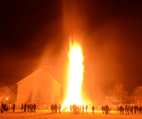 Zur Einstimmung auf die Silvesternacht veranstaltet die Freiwillige Feuerwehr Zwerenberg den traditionellen Fackellauf durch den Ort. Der romantische Spaziergang mit Fackeln (vor Ort günstig zu erwerben) richtet sich an alldiejenigen, die sich vor der langen Nacht nochmals an der frischen Luft bewegenwollen. Der Fackelzug rund ums Dorf startet um 19:30 Uhr hinter der Kirche in der Ortsmitte. Auf dem Fackelplatz haben die Blauröcke einen riesigen Holzstoß aufgeschichtet, der dann durch die Fackelträger entzündet wird und nach kurzer Zeit mit lodernden, weit leuchtenden Flammen niederbrennt. Die örtliche Feuerwehr bietet bereits ab 18:30 Uhr Glühwein und Punsch sowie Würstle vom Grill zum Verkauf an und lädt in toller Atmosphäre zum Ausklang des Jahres am wärmenden Feuer ein.