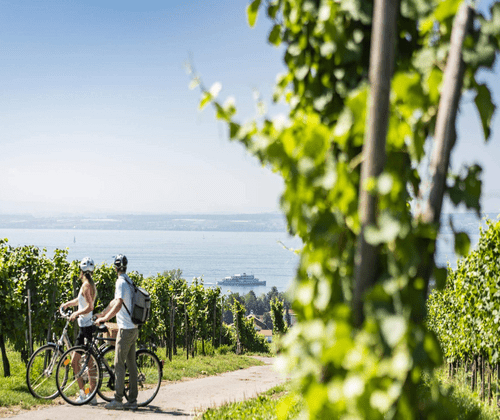 Zwei Fahrradetappen kombiniert mit zwei panoramareichen Pausen auf dem Schiff. Machen Sie einen Fahrradausflug und kombinieren Sie herrliche Ausblicke vom Sattel mit einer wohltuenden Auszeit und frischem Wind um die Nase auf dem Schiff. Bei unserer Grenzenlos-Tour erleben Sie einen ganzen Tag den See.