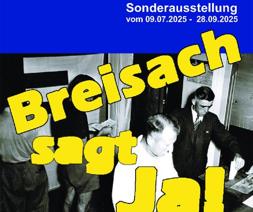 Das Museum der Stadtgeschichte lädt vom 9. Juli - 28. September 2025 zur Sonderausstellung zum 75. Jubiläum der 1. Europaabstimmung in Breisach am Rhein. Sonderausstellung „Breisach sagt Ja“ – 75 Jahre 1. Europaabstimmung Breisach am Rhein Vor 75 Jahren, am 9. Juli 1950 fand in Breisach die erste Volksbefragung Europas zur Bildung eines Europäischen Bundesstaates statt. Mit 95,6% bekannten sich damals die Bürgerinnen und Bürger der kriegszerstörten Grenzstadt, die sich mitten im Wiederaufbau befand, zur Idee eines vereinten Europa. Mit zahlreichen Dokumenten, Bildern sowie der 1964 vom Europarat an die Stadt Breisach übergebenen Europafahne erinnert das Museum für Stadtgeschichte in einer Sonderausstellung an die Ereignisse von damals. Dauer der Sonderausstellung: 9.Juli - 28. September 2025