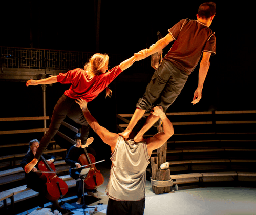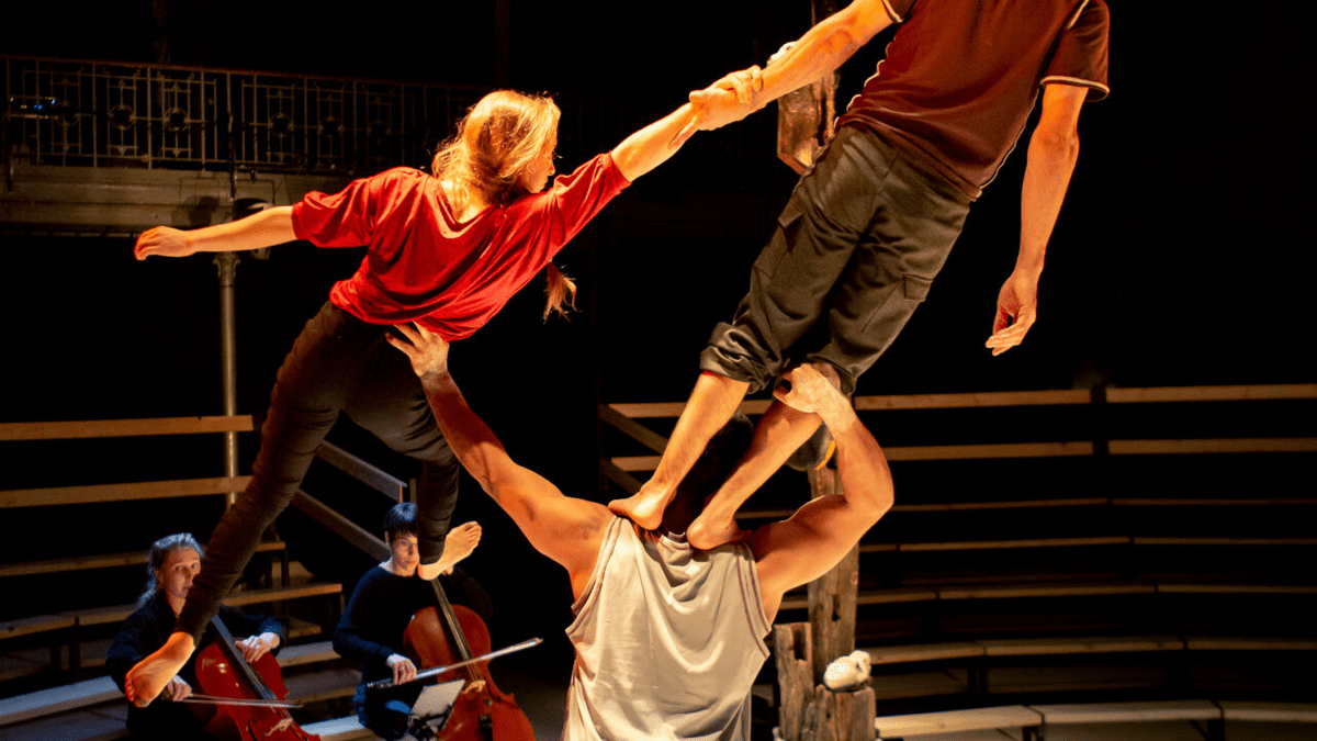 Zirkus auf Deutsch und Französisch / Cirque en allemand et en francais Inspiré d’un rituel d’Asie centrale, Reclaim réunit une chanteuse lyrique, deux violoncellistes et cinq circassien·nes acrobates pour une expérience collective unique, un concentré d’émotions. Inspiriert von einem zentralasiatischen Ritual vereint Reclaim lyrische Gesänge, zwei Cellisten und fünf Zirkusakrobaten zu einem einzigartigen Erlebnis, einem Bündel an Emotionen.