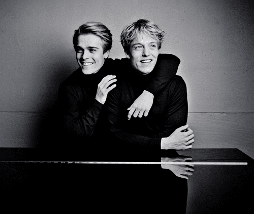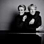 Sie sind jung und sie sind die besten ihrer Zunft: das Klavier-Duo Lucas & Arthur Jussen sowie die Percussionisten Alexej Gerassimez und Emil Kuyumcuyan. Und wenn sie sich zusammentun, dann fliegen die Funken, dann loten sie musikalische Grenzen aus. Seit ihren jüngsten Jahren sind die beiden Jussen-Brüder ein künstlerisches Gespann. Bereits im Alter von zehn und dreizehn Jahren gaben die beiden inzwischen weltberühmten Pianisten als Klavier-Duo ihr Debüt am renommierten Concertgebouw Amsterdam. Alexej Gerassimez, der mit gerade einmal 30 Jahren die Nachfolge des international gefeierten Schlagzeug-Professors Peter Sadlo an der Münchner Musikhochschule angetreten hat, und der vielfach preisgekrönte Schlagzeuger Emil Kuyumcuyan bilden mit perkussiver Kraft das musikalische Gegenstück zum Klavierspiel der Jussen-Brüder. Die vier kennen sich bereits von früheren Tourneen. Sie sind ein eingespieltes Team, dessen Experimentierfreude, Rhythmusgefühl und herausragende Virtuosität ein Feuerwerk an Tasten und Drumsticks verspricht. Neben Originalkompositionen für diese außergewöhnliche Besetzung stehen auch Bearbeitungen von Repertoireklassikern wie den „Symphonic Dances“ aus Leonard Bernsteins „West Side Story“ auf dem Programm.
