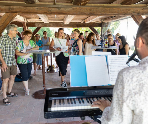 Wir singen gemeinsam unsere Lieblingshits Alle können mitmachen ... ... vom Chorprofi über den Duschsopran bis zur heimlichen Luftgitarristin. Wir singen querbeet ... ... von den Beatles und Udo Jürgens, über Neue Deutsche Welle und Rock- und Popklassiker bis hin zu AnnenMayKantereit und Roy Bianco: Mitsingen ist ausdrücklich erwünscht! Gesungen wird ohne Noten, Textblätter gibt’s vor Ort. Ein Nachmittag voller Musik und Gemeinschaft Seien Sie dabei, wenn das Museumsdorf singt – laut, herzlich und voller Freude! Bringen Sie Freund innen, Familie oder einfach gute Laune mit. Essen & Trinken Der Museumsbäcker verwöhnt Sie mit Köstlichkeiten aus dem historischen Backhäusle. Im Dorfcafé gibt's schwäbische Leckereien und Kaffee und Kuchen.