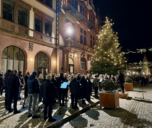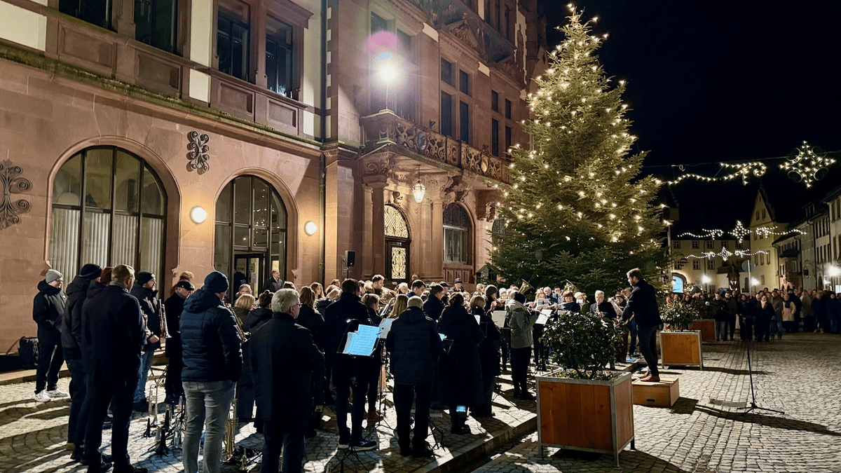 Traditionelles Weihnachtskonzert der Stadtkapelle mit Weihnachtsansprache von Herrn Bürgermeister Thomas Geppert. Einstimmung auf die Weihnachtsfeiertage unter dem großen Christbaum vor dem Rathaus. Musikalische Leitung: Thomas Rauber Programm Wir freuen uns auf Weihnachten (arr. Guido Rennert) Elfengeflüster in der Weihnachtsnacht (W. Lüdecke) Drei Nüsse für Aschenbrödel (Karel Svoboda) Sleigh Ride (Leroy Anderson) Weihnachtsansprache Bürgermeister Thomas Geppert Mentis (Thiemo Kraas) Winter Wonderland (Felix Bernard) Feliz Navidad (José Feliciano) Petersburger Schlittenfahrt (Richard Eilenberg)