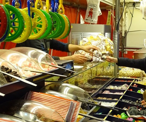 Traditioneller Krämermarkt am Mittwoch vor dem Gallustag. Jahrmarkt in den Straßen und Gassen der Altstadt.