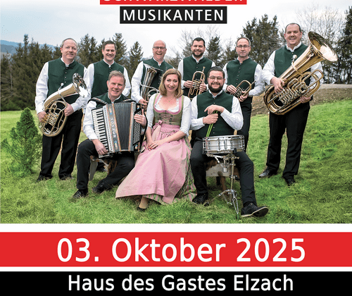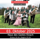 Die "Original Schwarzwälder Musikanten" zu Besuch im Elztal. Blasmusik pur, erstklassige MusikerInnen und tolle Stimmung warten auf Sie. Die "Original Schwarzwälder Musikanten" zu Besuch im Elztal. Blasmusik pur, erstklassige MusikerInnen und tolle Stimmung warten auf Sie. Vorverkauftickets über tickets@musikverein-yach.de bestellen. Oder bei unseren Vorverkaufsstellen (Schreibwaren Joos in Elzach und Schmieder Landtechnik in Yach) abholen.