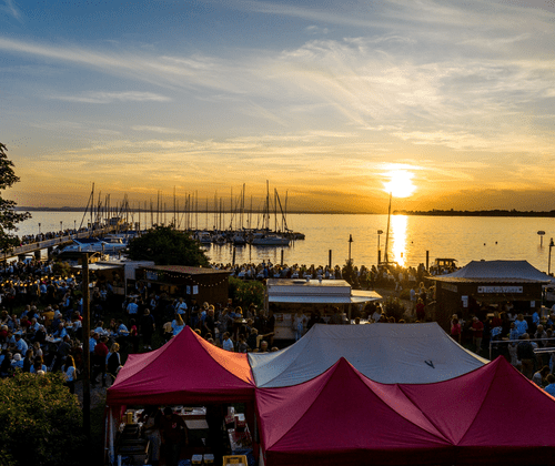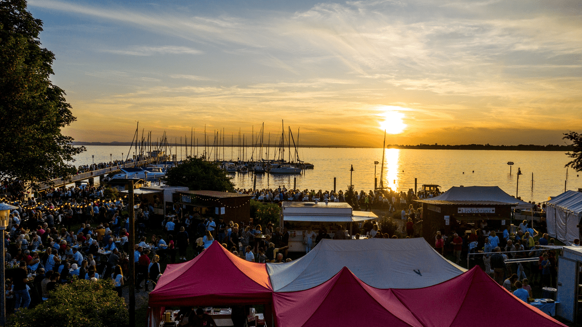50 Weine der bayerischen Bodensee-Winzer bei geselligem Treiben und leckeren Gaumenfreuden direkt am See genießen.