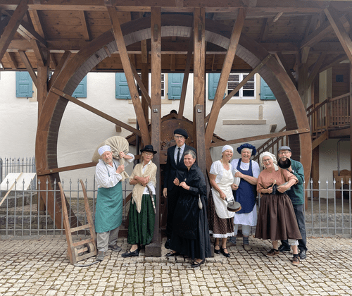 Mitten unter den Besuchern macht die Theatergruppe der Frick-Mühle die gesamte Mühle zu einer einzigen, großen Bühne. Vom ersten Moment an nimmt die Theatergruppe die Besucher mit in das echte Leben in der Mühle damals, am Sonntag, den 25. September 1892. Die Behörden beobachten damals mit großem Misstrauen alle verdächtigen Aktivitäten in der Stadt. Auch die Mühle und mit ihr - Minna Frick, die Müllerin - geraten in das Visier der Obrigkeit. Mit Gerüchten und allerlei Intrigen versuchen ihre Gegner ihr das Leben schwer zu machen. Bald beginnt aber ein noch viel größerer Feind die Mühle in ihrer Existenz zu bedrohen. Große Industriemühlen mit neuen Technologien treiben die alten handwerklichen Mühlen gnadenlos in den Ruin. Kann es in einer so dramatischen Lage noch Platz für eine Liebesgeschichte geben? Die Liebe hat es nicht leicht in dieser Zeit. Ist ihre Kraft stärker als Moralvorstellungen und wirtschaftliche Zwänge? Vielleicht, aber nur wenn … Das Ende der Geschichte ist so überraschend wie die ganze Handlung. Für Zuschauer und Mitwirkende ist dies ein guter Anlass zu einem gemeinsamen Fest – natürlich mit - aber nicht nur mit Wein und Brot. Das Stück ist geeignet für Besucher jeden Alters ab 12 Jahre. Dies alles ist inklusive im Ticketpreis von 12 Euro (bis 16 Jahre Eintritt frei). Die Mühle und alle Mitwirkende freuen sich über kleine und größere Spenden. Die Veranstaltung ist bereits an beiden Tagen ausverkauft.