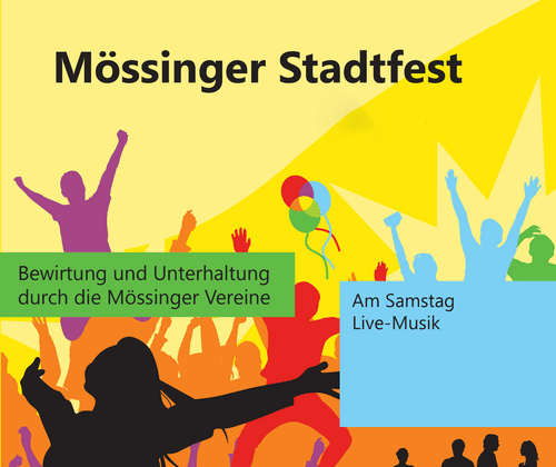 Wenn das Ferienende naht, steht das beliebte Mössinger Stadtfest bevor! Am Samstag/Sonntag, 12./13. September gestalten die örtlichen Vereine und Organisationen wieder gemeinsam das Fest, zu dem alle herzlich in die Mössinger Stadtmitte eingeladen sind.