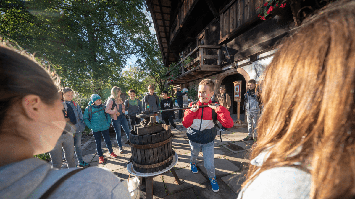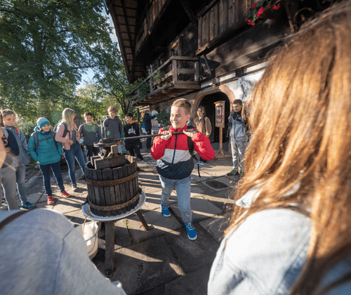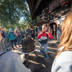 Moststation mit frisch gepresstem Apfelsaft. Probieren Sie täglich frisch gepressten Apfelsaft. Einmal am Tag kann in diesem Zeitraum das Mosten an der Trotte miterlebt werden.