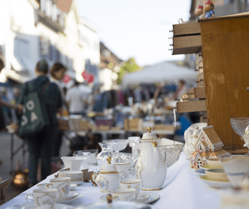Verkauf von Haushaltswaren, Spielsachen, Bücher, Kleidung und Kunst Eine Anmeldung ist nicht erforderlich.