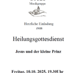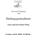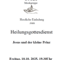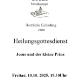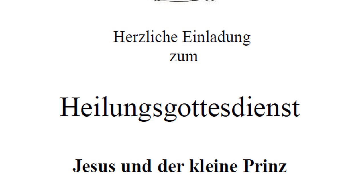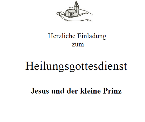 Heilungsgottesdienst Die Musikgruppe Credo lädt herzlich zum Heilungsgottesdienst "Jesus und der kleine Prinz" in die Franziskuskapelle, Am Silberwald in Bleibach, ein.