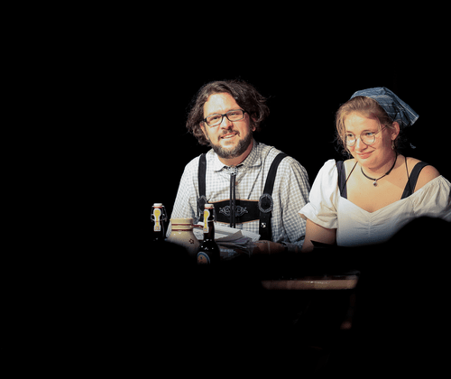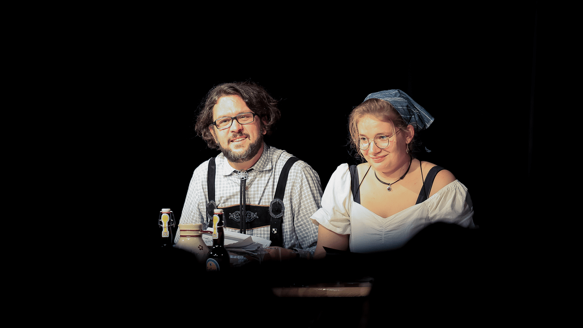 Dichtung – Drama – Deftiges Szenische Lesung mit Johannes F. Kretschmann und Hanna D. Stauß Aller feinschden Dinge sind drei! Auch 2025 geben die beiden Bühnenschwaben Johannes F. Kretschmann und Hanna D. Stauß in ihrem Semerenger Basislager wieder ein Gastspiel. Ihr bewährtes Programm hat der Sprachwissenschaftler vom Lande umeinandergebeugt, ausgemistet und granatenmäßig verbujäcklat. Doch der Dreiklang der szenischen Lesung bleibt der Kurzweil treu: Gaude, Gschroi und Noschtalgie! „Oim a Veschper en da Rucksack schwätza“ kann jeder gscheite Schwob, aber unseren Dialekt auch nach allen Regeln der Kunst in Schriftform zu bringen, schaffen nur die Schöngeister unter den Schaffern. Der Laizer Autor Johannes F. Kretschmann und die „kongeniale Schauspielerin“ (SchwäZ) Hanna D. Stauß aus Inneringen rezitieren mit szenischem Gebäffzg altehrwürdige und zeitgenössische schwäbische Dichterinnen und Dichter wie Sebastian Blau, Ingrid Koch und Hugo Brotzer. Auch verstörende Guatsle aus Kretschmanns Feder werden dargeboten. Dazwischen verlautbaren sie die edelsten Schmährufe aus der Schimpfwörterei von Thaddäus Troll und geben liebevollen Kosenamen ihren Raum. Die kurzweilige Komeed taugt Jung und Alt, Bodaständigen ond Reigschmeckte.