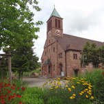 "Zeitfenster" in der Herz-Jesu-Kirche. Stimmungsvolle Beleuchtung und leise Musik laden zum Innehalten und Verweilen ein.