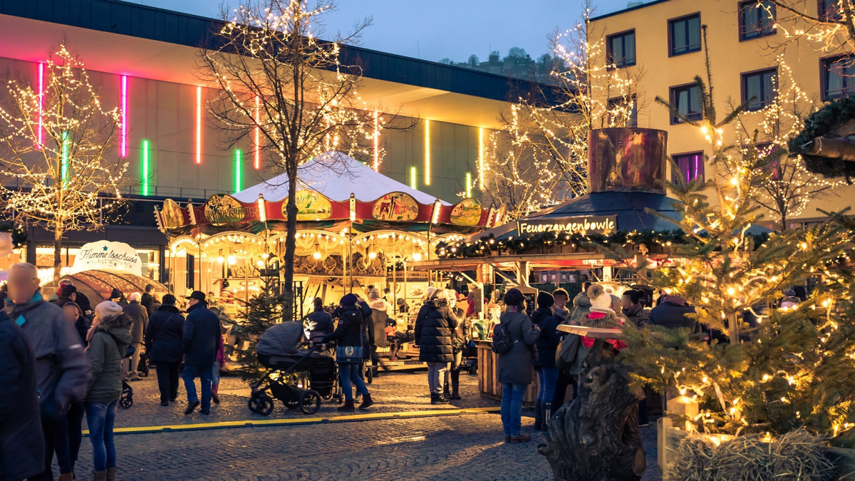 **Vorweihnachtliche Magie im Herzen von Singen ...** Auch dieses Jahr wird der Weihnachtsmarkt Singen wieder durch den stimmungsvollen Glühweingarten im Herzen des neu gestalteten Gastronomie-Bereichs auf dem Rathausplatz bereichert. Hier erwartet die Besucher nicht nur gemütliches Beisammensein, sondern auch eine Vielzahl an Aufführungen von Vereinen, Schulklassen und anderen gesellschaftlichen Gruppen, die den festlichen Zauber untermalen. Das charmante Ensemble aus einheitlichen Holzhütten wird durch einen liebevoll gestalteten Kinderbereich mit historischem Pferdekarussell und einem festlich geschmückten Baum am Eingang abgerundet. Alle Dekorationen bestehen aus natürlichen, wiederverwertbaren Materialien und spiegeln damit unser Engagement für Nachhaltigkeit wider. Für das leibliche Wohl sorgen zahlreiche regionale Partner mit köstlichen, vorweihnachtlichen Spezialitäten wie Raclette, Flammkuchen, Crêpes und vielem mehr. Natürlich dürfen auch Glühwein, Bio-Feuerzangenbowle, heißer Früchtepunsch und Hot Chocolate auf dem Weihnachtsmarkt Singen nicht fehlen.