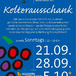Wir öffnen für Sie die Endersbacher Kelter und schenken eine Auswahl an Weinen und Sekten der Remstalkellerei aus. Für das leibliche Wohl sorgen wir mit Zwiebel- und Salzkuchen sowie kleinem Vesper. Genießen Sie ein stimmungsvolles Ambiente und entdecken Sie eine erlesene Auswahl an feinen Weinen und spritzigen Sekten der Remstalkellerei. Für das leibliche Wohl ist ebenfalls bestens gesorgt: Freuen Sie sich auf frisch gebackenen Zwiebel- und Salzkuchen sowie ein herzhaftes Vesper – perfekt, um den Genuss abzurunden. Kommen Sie vorbei an die Endersbacher Kelter und lassen Sie sich inmitten der Weinberge (auf dem Verbindungsweg vom Endersbacher Käppele nach Strümpfelbach) verwöhnen! Bei gutem Wetter sorgt am Sonntag, 5.10. zusätzlich die Blechgsang Wirtshausmusi von 14:30 bis 17:30 Uhr für musikalische Unterhaltung.
