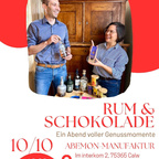 Ein Abend voller Genussmomente: feinste Bio-Schokoladen aus Ecuador – direkt & fair gehandelt – kombiniert mit erlesenen Rumsorten. Dabei: Markus Fellmeth, Rum-Experte, der mit Wissen, Humor & spannenden Geschichten in die Welt des Rums entführt.    RUM & SCHOKOLADEN TASTING Am 10.10.25 laden wir euch ein zu einem besonderen Abend voller Genussmomente mit Rum & Schokolade:  Taucht ein in die Welt feinster Bio-Schokoladen aus den erlesensten Regionen Ecuadors – direkt, fair und mit Liebe hergestellt. Begleitet wird das Tasting von Markus Fellmeth, Pfarrer in Baiersbronn-Mitteltal, leidenschaftlicher Rum-Experte und Geschichtenerzähler. Mit Humor, Wissen und einer Prise Kirchenhistorie entführt er Euch in die faszinierende Welt des Rums – von der Herstellung bis zu spannende Anekdoten rund um das „geistvolle“ Getränk.  5 ausgewählte Rum-Origins treffen auf 8 verschiedene Schokoladen – perfekt aufeinander abgestimmt.  Gemeinsam laden wir Euch ein zu einer Entdeckungsreise in die faszinierende Welt des Genusses. Erfahrt Spannendes über die Herkunft und Herstellung von Rum und Schokolade – und lasst eure Geschmacksknospen dabei außergewöhnliche Momente erleben!  Freut Euch auf ein Zusammenspiel aus edlen Schokoladenkreationen und ausgewählten Rumsorten, die Eure Sinne verzaubern.  Ort der Veranstaltung: Schokoladenmanufaktur Abemon: Im Interkom 2, 75365 Calw  Datum/Uhrzeit: 10.10.2025 / 19.00 Uhr  Preis pro Person: 59,00€ inkl. Getränke & Knabbereien  Anmeldung: Per mail an -> info@abemon.de oder telefonisch: 0172 45 36512  Nach der Anmeldung bekommt Ihr eine Teilnahmebestätigung und ein Link zur Bezahlung  Sichert euch jetzt euren Platz für dieses einmalige Geschmackserlebnis!  Faire Herkunft, pure Leidenschaft!!!