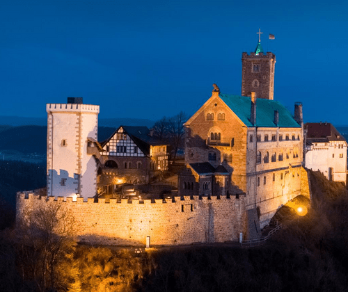 Die Wartburg bei Eisenach verzaubert ihre Besucher zu dieser Jahreszeit mit einem historischen Weihnachtsmarkt und genussvollen Adventskonzerten. Für den "Wegezoll" stehen neben den Burghöfen auch der Festsaal, das Museum und die berühmte Lutherstube zur Besichtigung offen. In kurzen, regelmäßigen Abständen besteht auch die Möglichkeit an einem geführtem Rundgang durch den mittelalterlichen Palas teilzunehmen. Der Südturm bietet einen märchenhaften Blick über die winterliche Landschaft des Thüringer Waldes.