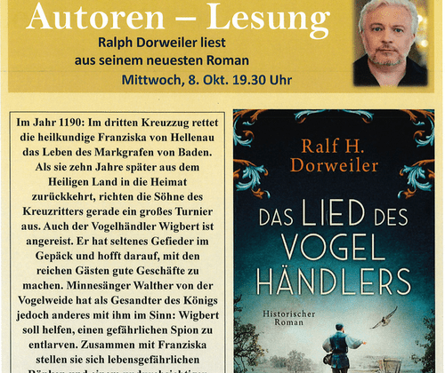 Autoren Lesung: Ralph Dorweiler liest aus seinem neusten Roman: Das Lied des Vogel Händlers 0 Uhr