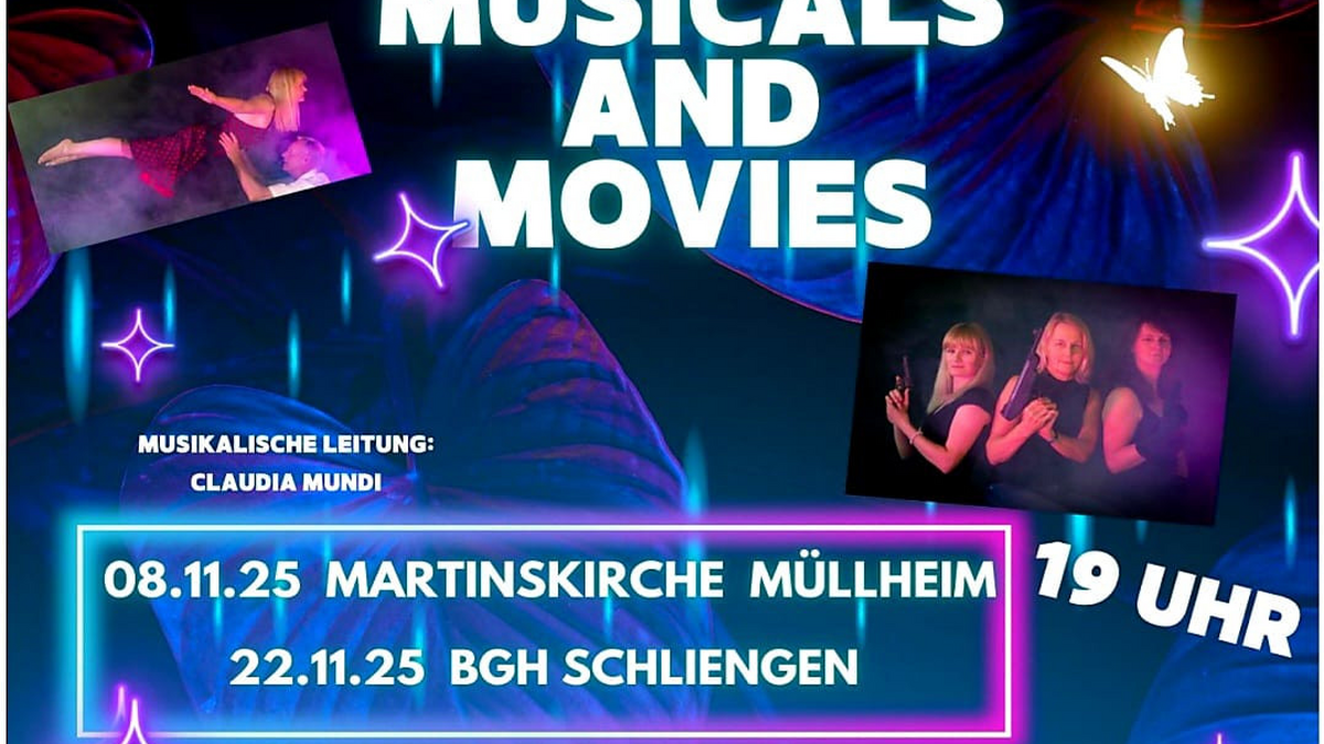 Jubiläumskonzerte „ Sounds of Musicals and Movies“ Die schönsten Songs aus Kino & Musicals, live gesungen vom Chor Pinot presto Der Chor Pinot presto e.V. Mauchen feiert! Ein Vierteljahrhundert voller Musik – das muss gefeiert werden! Der Chor Pinot presto aus Mauchen lädt zu seinen Jubiläumskonzerten ein und präsentiert ein Programm, das direkt ins Herz geht: „Sounds of Musicals and Movies“. Von großen Filmmomenten bis zu legendären Musicals-Hits – die Sängerinnen und Sänger bringen unter erfahrener musikalischer Leitung von Claudia Mundi bekannte Melodien mit Leidenschaft und Freude auf die Bühne. Mit diesen Konzertabenden sagt Pinot presto: Danke für 25 Jahre voller Musik, Gemeinschaft und Publikumsliebe! • Events: - Samstag, den 8. November 2025, um 19 Uhr in der Martinskirche Müllheim - Samstag, den 22. November, 19 Uhr im Bürger- und Gästehaus Schliengen • Kartenvorverkauf: - ab 10.10. in der Buchhandlung Beidek Müllheim und im Gartencenter Schmitt Schliengen - VVK 12€ / Abendkasse 15€ Lassen Sie sich bezaubern und feiern Sie mit uns!