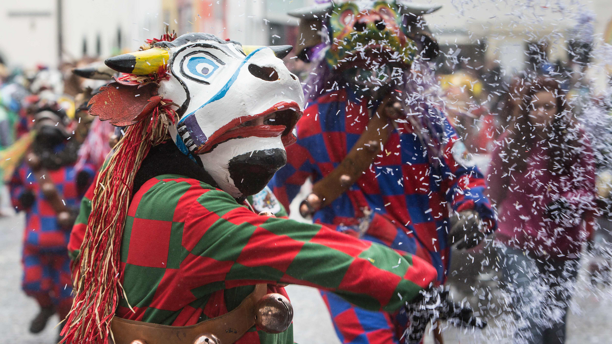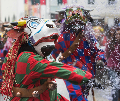 Tausende Narren toben beim großen Umzug durch die Straßen. Weit über 3.000 Hästräger und Musikanten aus dem ganzen schwäbisch-alemannischen Narrenraum sind dann in Isny und das Publikum drängt sich an den Straßenrändern um das Spektakel begeistert zu beobachten und mitzufeiern. Wilde Gestalten, Fabeltiere, bunte Männle und furchterregende Hexen ziehen unter den mitreißenden Klängen der Guggenmusiken, Schalmeien und weiteren Blaskapellen durch die Altstadt. Atemberaubende Pyramiden und lustige Einlagen machen Stimmung. Die Narrenzunft "Lachende Kuh" schallt "He muh" durch die Stadt.