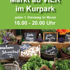 Der Feierabendmarkt „Markt ab VIER im Kurpark“ bietet eine Plattform, um nach Feierabend noch schnell seinen Einkauf regionaler Produkte tätigen zu können, aber soll auch gleichzeitig zum Verweilen und angeregten Gesprächen einladen.