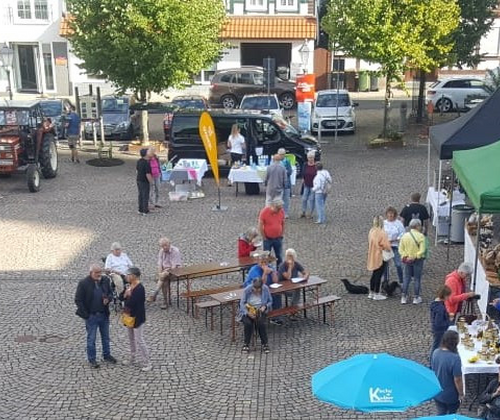 Der Bauernmarkt bietet ein wechselndes Programm, zum Beispiel Leckeres von Petra Kanngießer mit futtern wie bei Muttern, frischen Apfelsaft, Honig, Seife, Handcreme, Kerzen, Blumen, Selbstgenähtes für Groß und Klein, Käsespezialitäten, Gemüse, Leckeres vom Grill, Tee, Gewürze, Nüsse - und spontane Überraschungen sind meistens auch dabei.