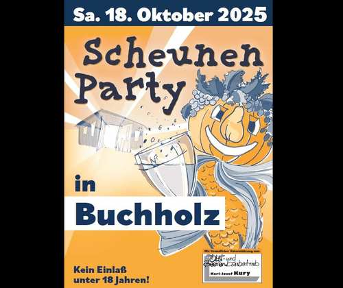 Herbstzeit = Scheunenpartyzeit. Feiern und tanzen in der landwirtschaftlichen Scheune mit Buchholzer Wein und toller Musik von der Partyband „QuerBeat“. In der schaurig-schön dekorierten Scheune findet ein ganz besonderes Herbstfest statt - die Buchholzer Scheunenparty! Die Freiwillige Feuerwehr Abteilung Buchholz freut sich wieder auf eine tolle Partynacht mit EUCH!