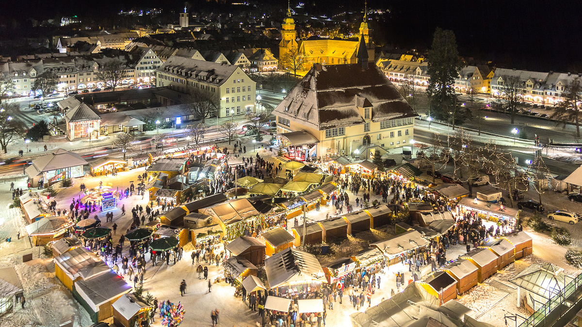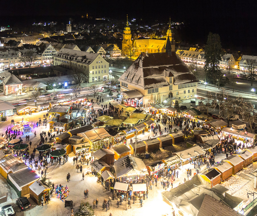 Festlicher Zauber, der Duft von Glühwein, Punsch und gebrannten Mandeln kehren bald zurück auf Deutschlands größten Marktplatz! Vom 4. Dezember bis 14. Dezember 2025 erstrahlt der Obere Marktplatz im Zauber der Weihnachtsmarkthütten. Von donnerstags bis sonntags öffnen die Hütten von 11 bis 21 Uhr ihre Fenster. Das Angebot auf dem Freudenstädter Weihnachtsmarkt reicht von liebevoll gefertigten Handwerksarbeiten über Naturkosmetik bis hin zu Weihnachtsplätzchen. Ob selbstgefertigte Kerzen, allerlei Gefilztes, filigrane Holzschnitzereien, Spielzeug, wärmende Strickwaren, kunstvolle Weihnachtsdeko und vieles mehr – das Sortiment der Aussteller ist groß. Dank dem vielfältigen Angebot wird das Schenken zum Vergnügen. Auch die kulinarische Auswahl lässt Feinschmeckerherzen höherschlagen. Warme Getränke wie Glühwein, Punsch und Co., Rote Wurst in den verschiedensten Variationen, Burger, Pizza und Rigatoni, schwäbische, kroatische und orientalische Leckereien und süße Versuchungen wie Crêpes, Waffeln und Baumstriezel sind die besten Mittel, um der winterlichen Kälte zu begegnen. Die Gastronomen sowie Freudenstädter Vereine und Organisationen freuen sich, Besucher verköstigen zu dürfen. Zahlreiche Highlights sorgen für eine festliche Atmosphäre während der Vorweihnachtszeit. Umrahmt von funkelnden Lichtern verwandelt sich der Pavillon wieder in eine Weihnachtskrippe, die im vergangenen Jahr extra für den Weihnachtsmarkt gefertigt wurde. Zahlreiche Lichterketten lassen den Markt in festlichem Glanz erstrahlen, die Freudenstädter Kindergärten und Schulen sorgen wieder für ganz besonderen Baumschmuck. Auch die Forstabteilung der Stadtverwaltung lässt es sich nicht nehmen, einen Beitrag zur Weihnachtsdekoration beizusteuern. Zwischen den Ständen kann die Weihnachtsgeschichte nachverfolgt werden, die den Besuchern des Wintergartens noch in Erinnerung sein dürfte. Spätestens wenn die Stadtkapelle Freudenstadt die ersten Töne anstimmt, legt sich ein Hauch von Adventszauber über die Stadt. Was auf dem Freudenstädter Weihnachtsmarkt nicht fehlen darf? Richtig, die einzigartigen Auftritte der Turmbläser, die vom Rathausturm weihnachtliche Melodien über den Platz erklingen lassen. Für Kinder hält der Weihnachtsmarkt ganz besondere Momente bereit. Auf dem Weihnachtsmarkt drehen sich das bunte Kinderkarussell und die Kindereisenbahn für das jüngste Publikum. Der Nikolaus kommt zu Gast und zaubert den Kindern mit süßen Überraschungen ein Lächeln ins Gesicht. In der Bastelstube dürfen kleine Hände kreativ werden, hier werden an zwei Terminen Nikolaustaschen und Christbaumanhänger gefertigt. Die Mitarbeiterinnen der Stadtbücherei Freudenstadt, die Puppenbühne Tannenspitz und die Villinger Puppenbühne erzählen Geschichten, die Groß und Klein in den Bann ziehen. 2. Eisstock-Cup Ein besonderes Erlebnis für alle Generationen ist der 2. Freudenstädter Eisstock-Cup mitten auf dem Markplatz, dessen Auftakt im vergangenen Jahr bereits mächtig für Stimmung gesorgt hat. Auf einer Kunststoff-Bahn können die Teams ihr Können beim Eisstockschießen beweisen, die erstplatzierten Mannschaften können tolle Preise ergattern. Außerhalb der Spielzeiten kann die Eisstockbahn jeweils zur vollen Stunde für private Spiele gebucht werden. Wer nicht am Eisstock-Cup teilnimmt, kann sein Glück beim Eisstockschießen somit dennoch versuchen möchte. Übrigens ein toller Anlass, um die Weihnachtsfeier direkt auf den Freudenstädter Marktplatz zu verlagern! Programm Donnerstag, 04.12., 15 Uhr: Weihnachtliche Lesung für Kinder mit Bürgermeister Wolfgang Fahrner, Ludwig-Schweizer-Saal im Stadthaus Donnerstag, 04.12., 15.30 Uhr: Offizielle Eröffnung des Weihnachtsmarktes durch Oberbürgermeister Adrian Sonder, Musikmuschel beim Stadthaus Donnerstag, 04.12., 15.30 Uhr: Walking Acts mit Walk-Art Connor, Marktplatz Donnerstag, 04.12., 18 Uhr: Auftritt der Jagdhornbläser der Jägervereinigung Kreis Freudenstadt e.V., Musikmuschel beim Stadthaus Freitag, 05.12., 14 Uhr: Bastelangebot für Kinder, Ludwig-Schweizer-Saal im Stadthaus, Materialkosten: 2 Euro Freitag, 05.12., 16 Uhr: Puschel zu Besuch auf dem Weihnachtsmarkt, Marktplatz Samstag, 06.12., ganztägig bis 18 Uhr: Nikolaus-Shopping bei Freudenstadts Händlern und Gastronomen mit Besuch des Nikolauses in den Geschäften von 11 bis 14.30 Uhr Samstag, 06.12., 15 Uhr: Besuch des Nikolauses, Musikmuschel beim Stadthaus Sonntag, 07.12., 14 Uhr: Kaspertheater mit der Villinger Puppenbühne, Ludwig-Schweizer-Saal im Stadthaus, Eintritt: 3 Euro Sonntag, 07.12., 15 Uhr: Mitmachzaubershow mit der Villinger Puppenbühne, Musikmuschel beim Stadthaus Sonntag, 07.12., 16 Uhr: Kaspertheater mit der Villinger Puppenbühne, Ludwig-Schweizer-Saal im Stadthaus, Eintritt: 3 Euro Sonntag, 07.12., 18 Uhr und 19 Uhr: Auftritt der Turmbläser, Rathausturm Donnerstag, 11.12., 15 Uhr: Weihnachtliche Lesung für Kinder mit Oberbürgermeister Adrian Sonder, Ludwig-Schweizer-Saal im Stadthaus Donnerstag, 11.12., 15.30 Uhr: Puschel zu Besuch auf dem Weihnachtsmarkt, Marktplatz Freitag, 12.12., 16 Uhr: „Die ri-ra-rote Bommelmütze“ mit der Puppenbühne Tannenspitz, Ludwig-Schweizer-Saal im Stadthaus, Eintritt: 3 Euro Freitag, 12.12., 18.00 und 18.50 Uhr: Auftritt der Turmbläser, Rathausturm Samstag, 13.12., 14 Uhr: Bastelangebot für Kinder, Ludwig-Schweizer-Saal im Stadthaus, Materialkosten: 2 Euro Samstag, 13.12, 14.30 Uhr: Auftritt der Musik- und Kunstschule Region Freudenstadt e.V., Musikmuschel beim Stadthaus Samstag, 13.12., 17 Uhr: „Zwei Engel mit wichtigem Auftrag!“ mit das chamaeleon THEATERWELTEN, Musikmuschel beim Stadthaus Sonntag, 14.12., 11 Uhr: Auftritt der Stadtkapelle Freudenstadt e.V., Musikmuschel beim Stadthaus Sonntag, 14.12., 13 Uhr: Puschel zu Besuch auf dem Weihnachtsmarkt, Marktplatz Sonntag, 14.12., 18 Uhr und 19 Uhr: Auftritt der Turmbläser, Rathausturm Besucher, die mit dem Auto anreisen, können die Tiefgarage un