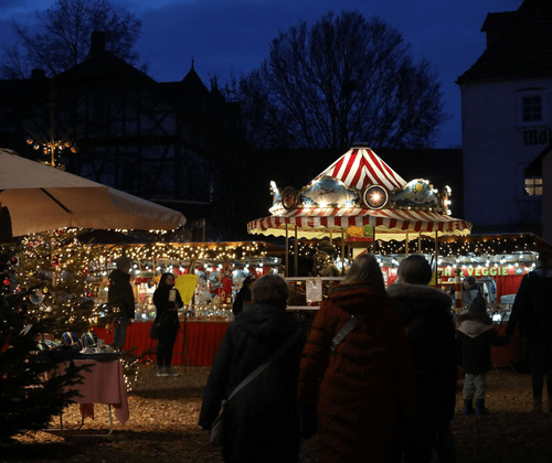 Der Weihnachtsmarkt findet an zwei Wochenenden statt, vom 5. bis 7. Dezember und vom 12. bis 14. Dezember 2025, und ist im idyllischen Hohhaus-Garten zu finden. Die historische Altstadt erstrahlt in festlicher Weihnachtsbeleuchtung. Ein weiteres Highlight auf dem Weg in den Hohhaus-Garten sind die lebenden Schafe an der Krippe, die immer für leuchtende Kinderaugen sorgen.